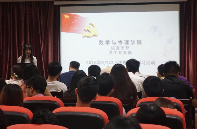 (通讯员:孙宇涛、李春霖)9月22日下午16:30,十大买球的正规网站主题党日学习活动在数理楼二楼会议室举行,院党委书记李宇凯、院直支部的老师以及学生党支部的同学们参加此次活动。