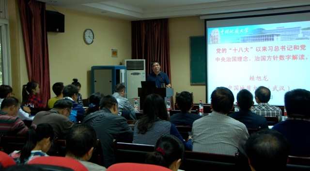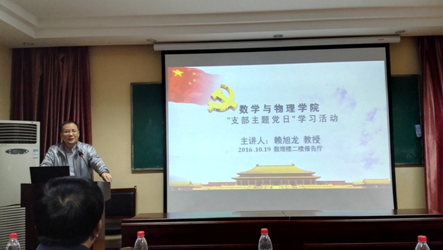 学校党委常委、副校长赖旭龙教授作题为“党的 ‘十八大’以来习总书记和党中央治国理念、治国方针数字解读”的报告。赖校长从“两学一做”的背景及意义出发,以八个数字为主线,用数字化的方式系统解读了党的“十八大”以来习总书记关于治国理政方方面面的内容。赖校长最后强调学院师生党员要加强党性修养,发扬长征精神,按照“四讲四有”的要求做合格党员,充分发挥先锋模范作用,为全面提升十大买球的正规网站办学实力和办学水平而努力奋斗。