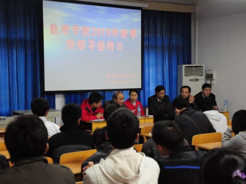 11月29日下午四点,十大买球的正规网站2010年秋季院领导接待日活动在数理楼二楼会议室举行。院领导班子全体成员和2010级本科生与会参加。在活动过程中,院领导班子成员就同学们关心的诸如专业学习、考研就业和日常生活等问题进行耐心回答。院领导接待日是学院领导与广大同学沟通交流的重要渠道,在解答同学们学习和生活中众多疑惑的同时,有利于增进师生之间的相互了解,促进学院服务管理水平的改善提高。