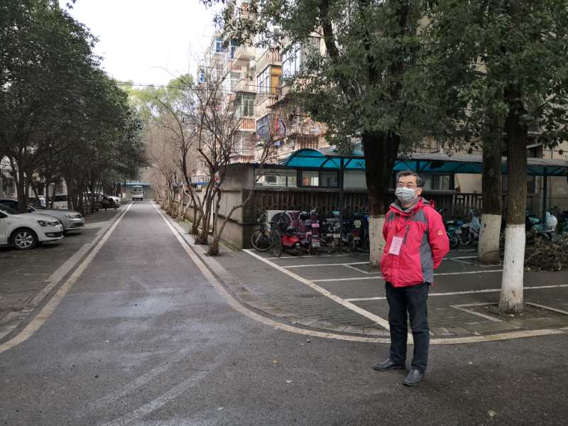 老师也向我们阐述了他的工作内容:“为配合市政府封小区、封重点楼栋的措施,我在校园里巡查,禁止居民非必要外出。主要是劝返非必要外出人员,给信息不通的老人宣传政策并提供必要帮助。”