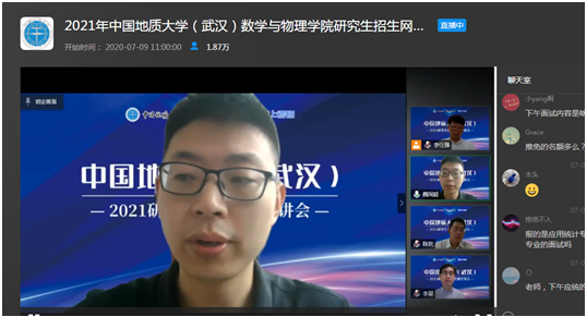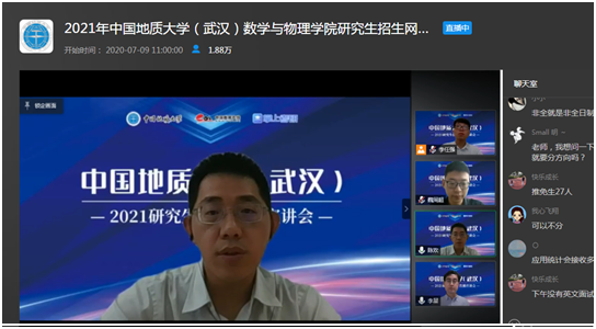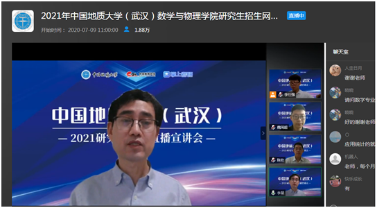 7月9日上午,十大买球的正规网站副院长魏周超、物理系主任陈欢、信息与计算科学系主任李星通过中国教学在线网络直播平台,向同学们介绍了十大买球的正规网站数学、物理、应用统计三个研究生招生学科的基本情况,并回答了同学们提出的各种问题。据统计,直播结束时,有大约1.8万余人参与了本次直播活动。