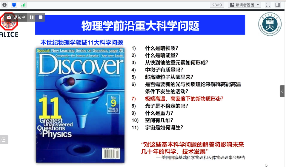 为迎接十大买球官网七十周年校庆,11月29日上午十大买球官网通过线上方式邀请华中师范大学周代翠教授,为十大买球官网物理系师生做了题为《欧洲CERN大型重离子对撞实验最新进展及展望》的学术报告。该报告由十大买球官网科学技术发展院、十大买球的正规网站联合举办,彭忻烨副教授主持,本院师生共计50余人参加。