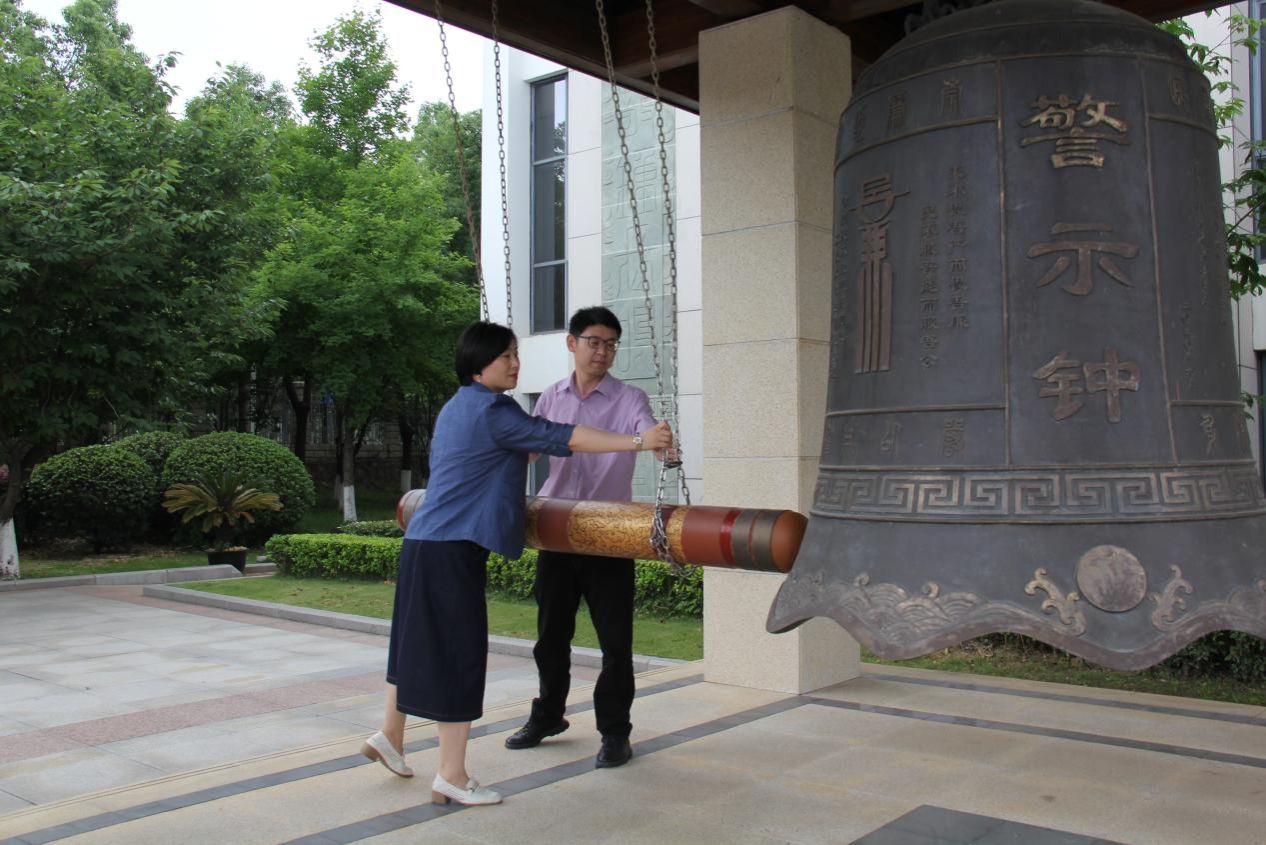 参观结束后,大家来到基地廉政文化广场,面向警示钟庄严肃立。十大买球官网党委书记于晓舟、院长魏周超敲响了廉洁警示钟,三声警钟响起,入耳入脑入心,提醒党员干部时刻保持自警自重自省。