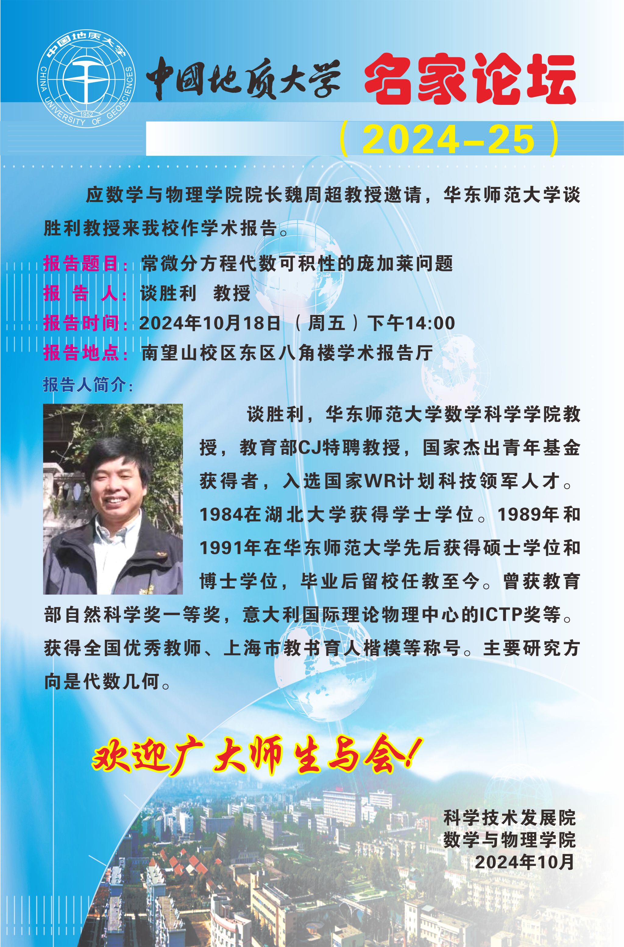 2024年10月18日谈胜利教授学术讲座:常微分方程代数可积性的庞加莱问题
