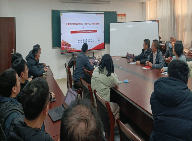 为深入学习贯彻落实《中华人民共和国学位法》(以下简称《学位法》),大力提升学位授予质量,强力推动研究生教育迈向高质量发展阶段,1月8日下午,学院召开党政联席会议,组织教师专题学习《中华人民共和国学位法》。
