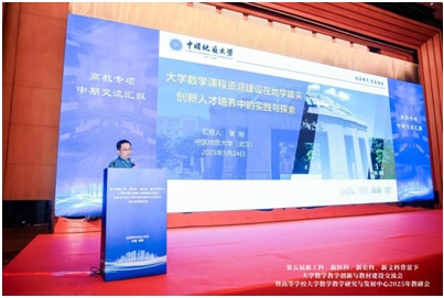 会议期间,高等学校大学数学教学研究与发展中心主任李继成教授解读了2024年度工作总结及2025年立项指南,鼓励高校围绕“AI + 数学教育”“新工科数学课程群建设”等方向开展联合攻关。在分组讨论环节,十大买球官网黄刚教授做了“大学数学课程资源建设在地学拔尖创新人才培养中的实践与探索”的项目汇报,介绍了十大买球官网大学数学与地学交叉教学团队围绕地球科学与大学数学课程的融合,构建知识点对应的应用体系,形成具有代表性的课堂教学案例,组织编写具有新工科特色的系列教材、推动课程资源数字化建设,积极开展教学实践与探索,提升学生交叉学科素养与应用能力。报告受到了与会同行的高度赞扬。